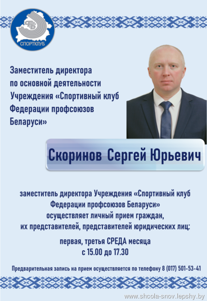 ГРАФИК Личного приема граждан, их представителей, представителей юридических лиц руководством Учреждения «Детско-юношеская спортивная школа первичной профсоюзной организации...
